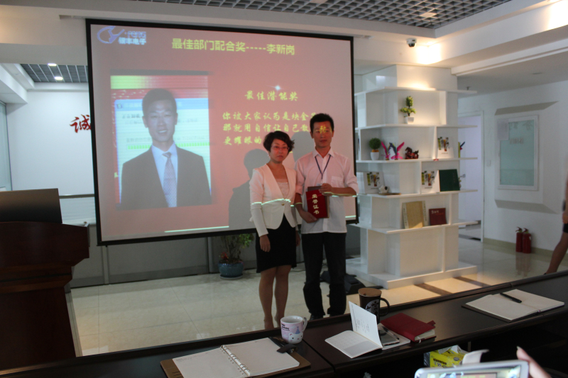 2014年8月2日,銀豐之家7月份銷售表彰大會(huì)在公司大廳隆重召開。參加此次大會(huì)的領(lǐng)導(dǎo)有公司董事長(zhǎng)、總經(jīng)理、副總經(jīng)理以及銀豐的全體同仁,大家共聚一堂,總結(jié)過去、續(xù)寫未來。 大會(huì)由行政部柴孟來主持,會(huì)議主要對(duì)剛剛過去的7月份銷售業(yè)績(jī)比較突出的同仁及最佳配合部門進(jìn)行表彰和獎(jiǎng)勵(lì)。金色7月、碩果累累,其中7月份銷售冠軍、業(yè)務(wù)部行業(yè)經(jīng)理謝遠(yuǎn)飛更是業(yè)績(jī)出色,銀豐公司副總經(jīng)理周輝女士親自為獲獎(jiǎng)人員頒發(fā)獲獎(jiǎng)證書及獎(jiǎng)品,并對(duì)他們表示祝賀。隨后,獲獎(jiǎng)人員發(fā)表了自己的獲獎(jiǎng)感言,并對(duì)本部門及公司其他部門同仁的配合表示感謝,同時(shí)也希望自己能夠再接再厲,再創(chuàng)輝煌。 頒獎(jiǎng)儀式過后,銀豐公司總經(jīng)理王偉東先生做了總結(jié)性發(fā)言,一方面對(duì)此次受表彰人員所取得的成績(jī)表示充分的肯定與贊揚(yáng);另一方面對(duì)其它部門默契的配合、付出表示感謝。銀豐之家是一個(gè)充滿激情與正能量的團(tuán)隊(duì),相信在公司領(lǐng)導(dǎo)的帶領(lǐng)下,銀豐公司的明天會(huì)更好!