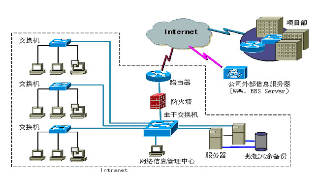 計(jì)算機(jī)網(wǎng)絡(luò)系統(tǒng)是建筑智能化系統(tǒng)的最重要的系統(tǒng),是核心系統(tǒng)。所有其它系統(tǒng)的核心調(diào)控都有賴于計(jì)算機(jī)系統(tǒng)的實(shí)現(xiàn),同時(shí)計(jì)算機(jī)網(wǎng)絡(luò)系統(tǒng)可以實(shí)現(xiàn)整個(gè)系統(tǒng)的自動(dòng)化控制和各種權(quán)限分配,同時(shí)可以做到不同區(qū)域的人員共同協(xié)調(diào)工作和資源的共享。